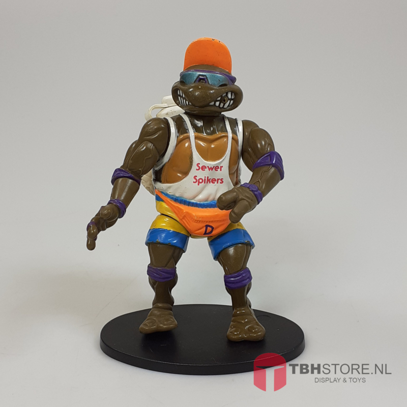Bijzonderheden: De Sewer Spitting Spike ’n Volley Don verscheen in 1993 in de Sewer Spitting Turtles reeks van Playmates. Deze lijn gaf de Turtles een speels gimmick: je kon water in hun mond gieten en ze lieten het er met kracht weer uit spuiten. Donatello kreeg in deze serie een sportieve twist als volleybalspeler. Met zijn sporttenue, zonnebril en volleybalaccessoires was dit een figuur dat meer op humor en fun gericht was dan op de strijd tegen Shredder.