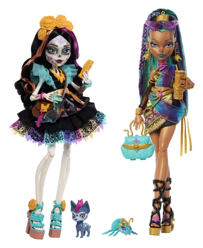 Introducing Skelita Calaveras! This Monster High doll is a terrifyingly creative skeleton from Hexiko. She comes with seven glowing and bewitching accessories and has a Xolo puppy named Candelita. Children aged 4 and up will love adding the spooky Skelita Calaveras doll to their Monster High collection! Fully posable. Doll cannot stand on its own. Colours and designs may vary.