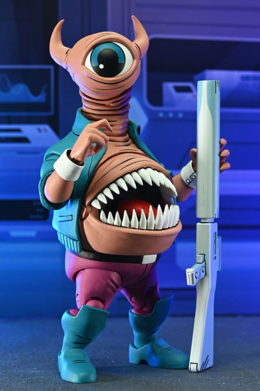 It's Bellybomb's first time in NECA action figure form! Straight from the pages of Eastman and Laird's Teenage Mutant Ninja Turtles Adventures comic book series from Archie Comics, Bellybomb the alien outlaw is ready to join your collection! Featuring an articulated eyeball and mouth, this 7-inch scale action figure includes extra hands, Krang mini figure, and bazooka. Comes in collector-friendly window box packaging with original artwork by TMNT Adventures artist Ken Mitchroney!