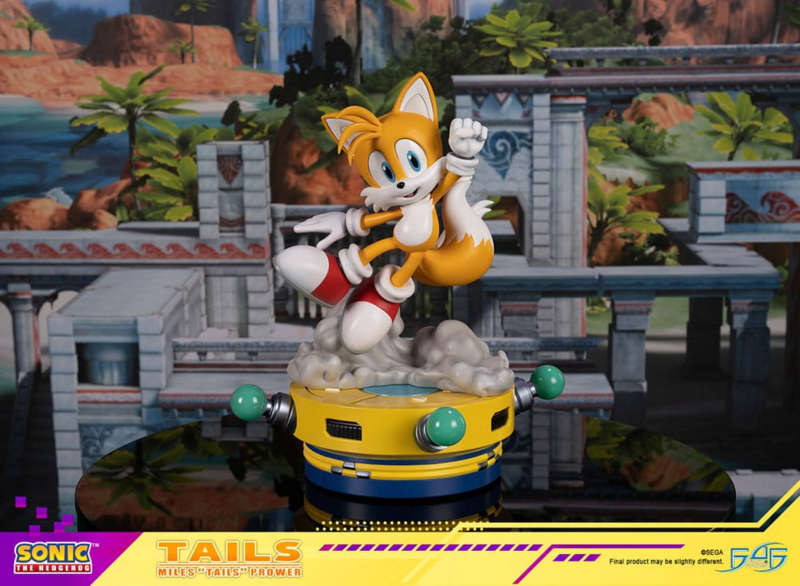 First 4 Figures proudly presents the high-quality resin statue of Sonic The Hedgehog's Miles "Tails" Prower! Tails fights side-by-side with Sonic against the nefarious Dr. Eggman. First appearing in Sonic the Hedgehog 2 in 1992, this bright, energetic, and brave fox is still inseparable from Sonic! This statue features Tails faithfully recreated in his modern video game appearance. Everything, from the amber-orangish fur on the top of his head to the iconic red and white shoes on his feet, is accurate to what fans expect from the one and only Tails!Sonic The Hedgehog - Tails includes:-Premium Painted Resin Statue of Tails-Energetic pose with him leaping into the air-Brilliantly colored base inspired by the Miles Electric handheld gadgetSize: 31,2 x 31,2 x 35,7 cm