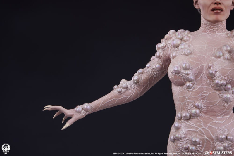 "Premium Collectibles Studio is proud to present the Gozer 1:4 Scale Premier Series Statue. This new 1:4 scale collectible brings to life the Class 7 Deity of Destruction from the fan favorite 1984 film, Ghostbusters. Standing over 21" tall, the 1:4 statue depicts the Gozerian descending a set of stone steps and is fully sculpted in impressive detail. The supernatural texture of her costume was given extra care, with intricate veining running the length of the costume and clusters of shimmering spheres adding extra depth to her form. Gozer's portrait is faithfully recreated as well; her dramatic hair and features emphasize the look of contempt on her face as she assesses the new world before her. Her portrait is elevated by some truly impressive paint design. The severe shadows and makeup on her face enhance the already impressive portrait, while the glossy red eyes add focus and complement the ghastly pink hues of her costume. Top that off with an eerily shimmering finish on the costume's bubble clusters and intimidating claws and you have a must have collectible for any Ghostbusters fan. Show the world you ain't afraid of no ghosts and add the Gozer 1:4 Scale Premier Series Statue to your Ghostbusters collection today!"Product Size: 53 x 33 x 36 cm