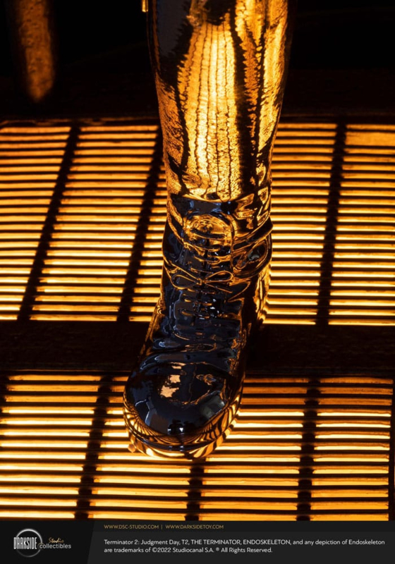 "John Connor: So this other guy, he's a Terminator like you, right?The Terminator: Not like me, T-1000, advanced prototype. Made of mimetic polyalloyJohn Connor: What the hell does that mean?The Terminator: Liquid metal.Celebrating the 30th Anniversary of the sci-fi classic 'Terminator 2: Judgment Day', Darkside Collectibles Studio TM proudly presents T-1000 Liquid Metal 30th Anniversary Premium Statue.Following the Sarah Connor statue and the T-1000 portrayed by Robert Patrick, Liquid Metal version is the third addition to the T2 30th Anniversary collectibles series.T-1000 is Skynet's elite assassin robot, whose body is composed entirely of a mimetic poly-alloy (liquid metal) that allows it to assume the form of other objects or people of equal mass. Able to liquify quickly, transform innovatively, change its color and texture to simulate clothes and other nonmetallic materials including morphing its body parts into solid metal tools or bladed weapons, T-1000 is the ultimate infiltration assassin machine.T-1000 mostly disguises itself as a police officer to gain trust, access information, and provide a benign appearance. Darkside Collectibles Studio TM artisans captured and brought to life the exact turning point from liquid metal machine to police deceiver transformation. The Statue features high detail screen accurate Robert Patrick's likeness wearing the police officer costume as seen in the movie just before color is applied.A high detailed light up themed base completes a stunning screen accurate representation of the scene.Highly detailed and accurate the statue has been developed under the supervision of Studio Canal for a stunning result of the iconic character. The finest sculpting details are implemented in this statue to guarantee the satisfaction of all Terminator Fans.Limited to 150 pieces.Product Size: 70 x 48 x 38 cm