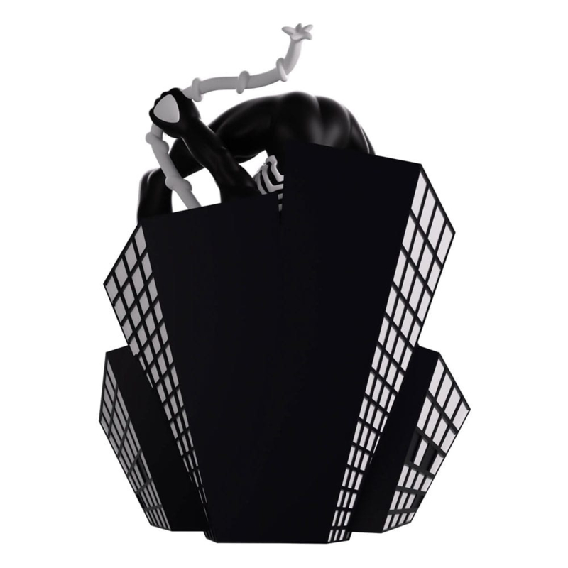 Now this is a spectacular return to Youtooz if we do say so ourselves! That's right, Spider-Man is back with another vinyl figure! At 4.9 inches tall and posed in an acrobatic tumble as he swings through the abstract peaks of black and white skyscrapers, his body curls in the middle as he somersaults backwards and grips the end of a long curling web. With his body covered in a pitch-black suit that blends into the darkness of the night, his eyes, soles of his feet and the spider symbol that wraps around his chest are stark white. The exterior of his packaging sees a hole blown through a light green wall as pillars of smoke rise up from the rubble, while the interior is covered in the light grey panels of Marvel comics. The protective sleeve is then filled with a collection of vertigo-inducing black and white buildings as his figure can be seen through the large clear window at the packaging's front. This collectible ships in a matte, embossed, protective outer sleeve and a custom-sized plastic protector for maximum protection during shipping.About Spider-Man:Spider-Man is a Marvel superhero created by Stan Lee and Steve Ditko. Since its initial comic debut in 1962, the Spider-Man mantle has been taken up by many unlikely heroes-to-be, telling varied and relatable stories that can appeal to anyone no matter who you are!
