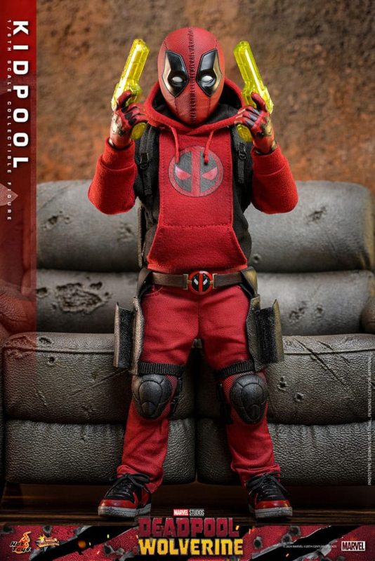The well-regarded Deadpool & Wolverine has certainly given Marvel fans an epic hero movie in 2024. But this is not just another action movie, it could also be a "family movie" as Kidpool joins Deadpool and Ladypool along with Babypool. As an interesting cameo of the movie, Kidpool also made a remarkable impression with her own special humor-inherited from Deadpool.Ever since the movie's release, love from fans has been all over the place. In order to expand the Deadpool & Wolverine sixth scale collection, Hot Toys is excited to officially introduce the Kidpool Sixth Scale Collectible Figure!The carefully crafted Kidpool action figure features a newly developed masked head with multiple pairs of interchangeable eye piece, a distressed red and black costume that recreates Kidpool in her two-layered hoodie and red pants with kneepads, and a pair of matching sneakers. The Kidpool Special weapons-a pair of water guns, backpack with two katanas, interchangeable hands for different poses and gestures, are included alongside the figure. What's more is that a gray colored couch with battle damage effect is going to complete your own beautiful "Deadpool family photo" in 1/6th scale!Now that you have your one-sixth Deadpool variant figures on display, reserve a spot for Kidpool as well!