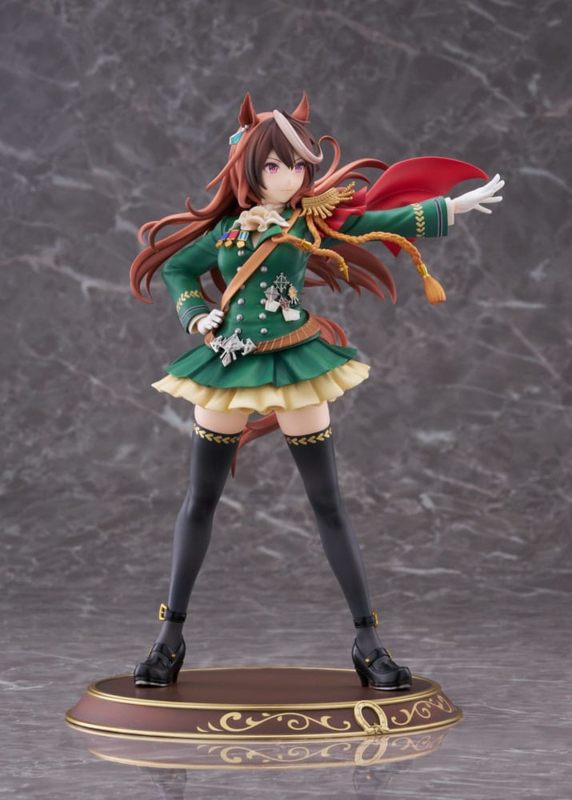 We are excited to present the scale figure "Symboli Rudolf: Signature Racewear Ver." from "Umamusume: Pretty Derby"!She is a dignified and beautiful Umamusume worthy of the name "Emperor," and her elegant poise has been faithfully recreated in figure form. Her hair and costume flutter realistically as she gazes confidently straight ahead. Her pose, in which she is standing proudly and cutting the wind with her left arm, gives her a unique and unrivaled style. Her signature racewear, "Emperor's Path," is faithfully reproduced down to the smallest of details and decorations. The pedestal is also simple, yet sturdy with shiny gold decoration.Be sure not to miss the chance to add the powerful and beautiful "Emperor" Symboli Rudolf to your collection!