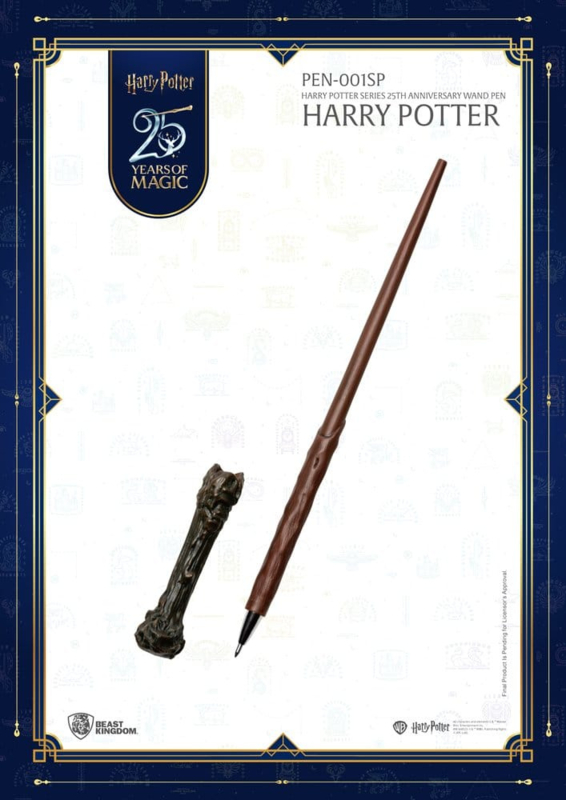 Magic returns-step into the mysterious world of wizardry!In celebration of the 25th anniversary of the Harry Potter films, Beast Kingdom proudly presents the highly anticipated Harry Potter Wand Pen Collection, created in response to fans worldwide. Collect the full set and begin your magical journey at Hogwarts today!The series features 6 + 1 wand designs, meticulously crafted to recreate the iconic shapes and textures seen in the films. The grip section is designed as a detachable pen cap, combining functionality with authenticity. Each wand measures approximately 28-33 cm, offering a comfortable writing experience.To commemorate the anniversary, a special secret edition-Lucius Malfoy's wand-has been introduced. Featuring a snake-head design, this rare and striking piece is available only to the luckiest collectors.From the legendary Elder Wand to the wands of Ron and Hermione, there's no need to visit Diagon Alley-collect them all now with Beast Kingdom!