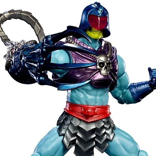 Artikelnummer: K4-07-MATTJBP81 OverzichtThis MOTU Masterverse action figure of Terror Claws Skeletor is evil and armed for combat, a New Eternia edition of the Master of the Universe character. Designed at 7-inch scale with 30 points of articulation, he comes with oversized claws attached to the back of the armor with hoses and a removable face visor. The skull-faced claw-flinging villain comes with the high level of detail collectors expect and is beautifully packaged in a window box suitable for display. Terror Claws Skeletor figure makes a great addition to any Masters of the Universe collection; suitable for MOTU fans ages 6 years and older.